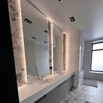 Зеркала любого размера и формы с просветлённым стеклом, LED-подсветкой и смарт-функциями — без искажений и зелёного оттенка, для вашего идеального интерьера.